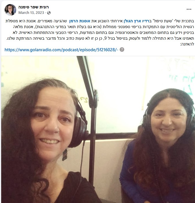 • הצטרפו אלי להדגמה חיה של טיפול רגשי